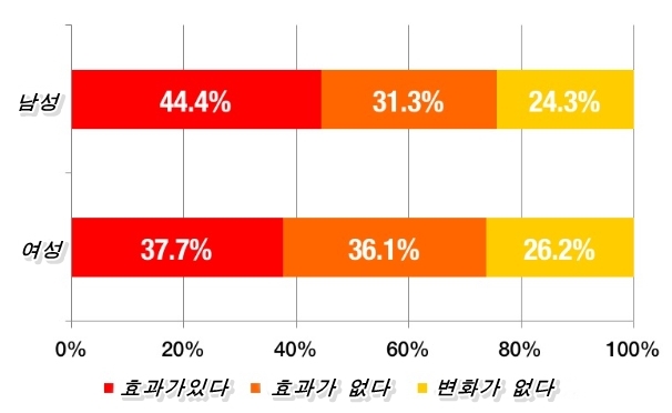 덧붙여서 여성의 결과를 연령대별로 살펴보면, 「네」의 응답률이 20대와 50대가 약 5할로 높고, 30·40대가 3할을 밑돌고 있어 효과가 또 하나인 것 같습니다.